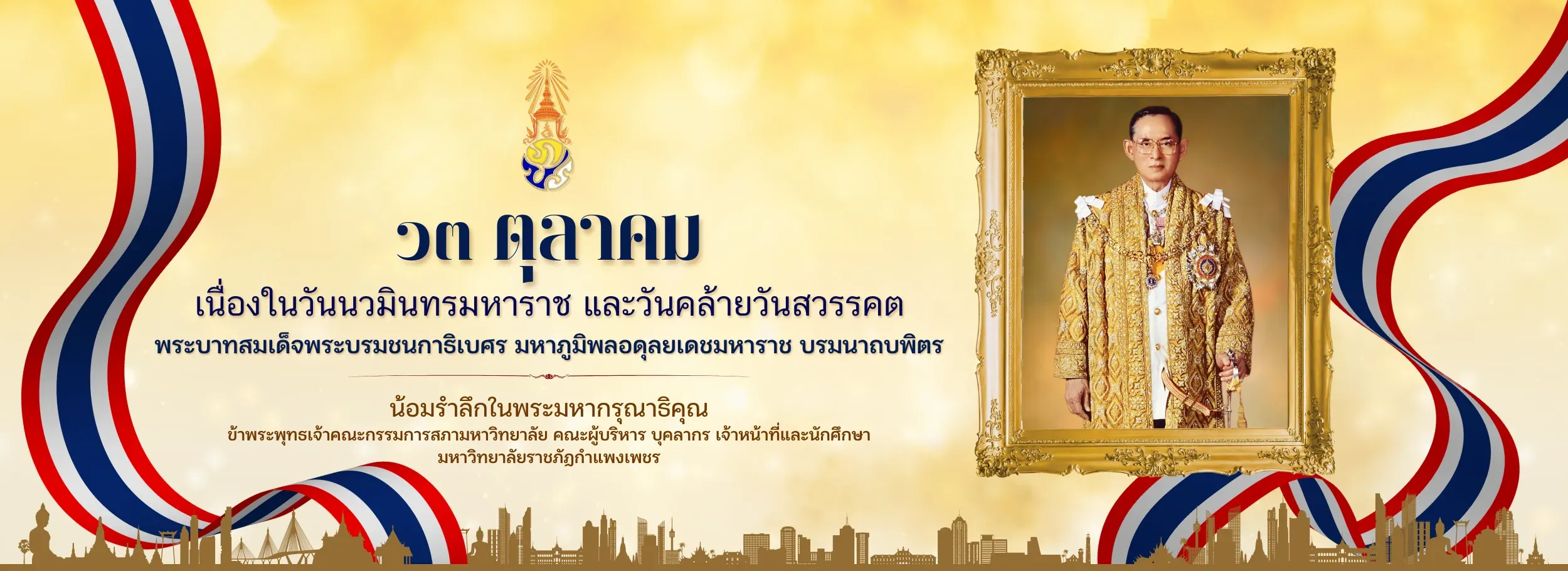 ๑๓ ตุลาคม เนื่องในวันนวมินทรมหาราช และวันคล้ายวันสวรรคต