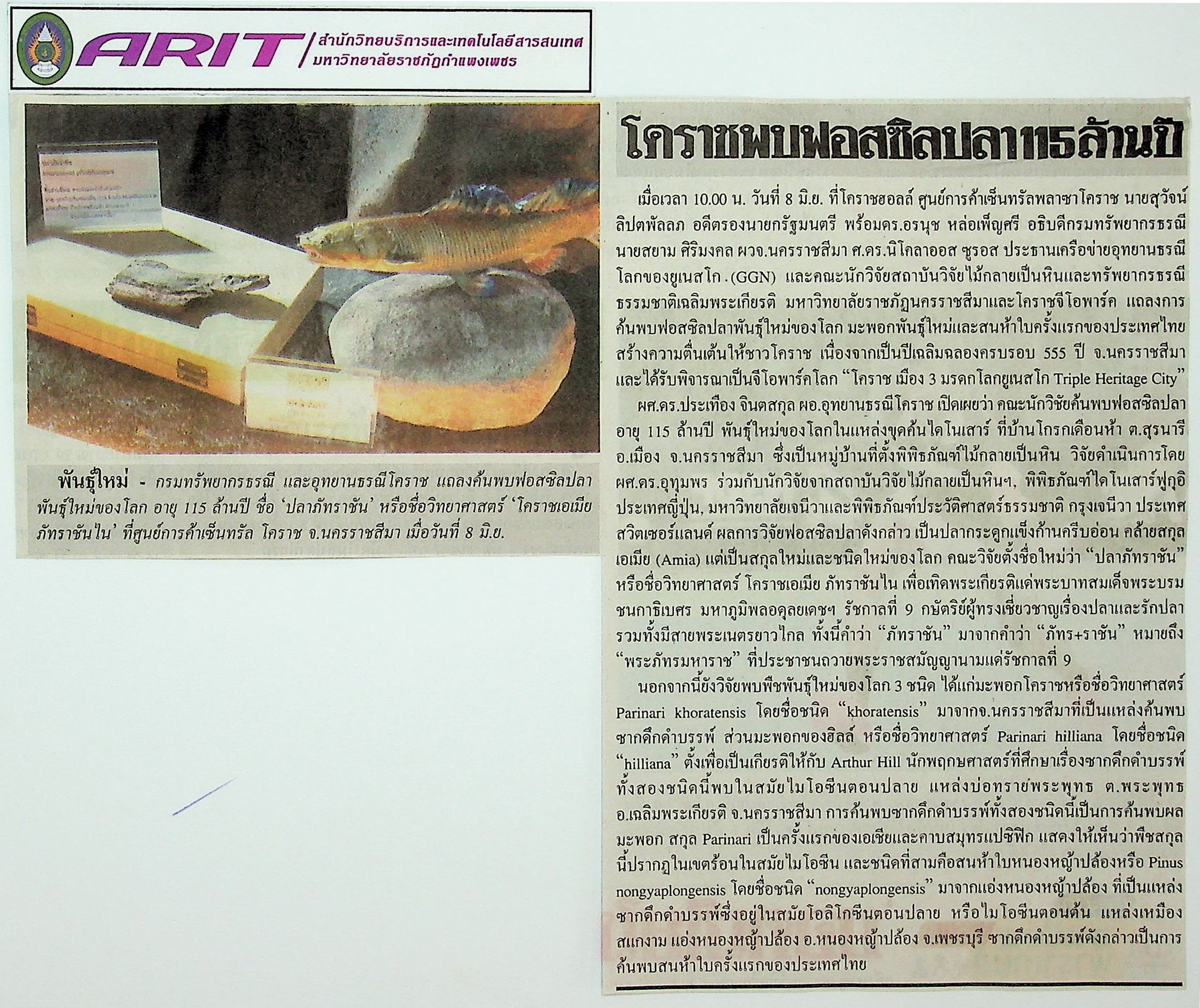 | หัวข้อข่าว | โคราชพบฟอสซิลปลา 115 ล้านปี | ผู้จัดทำ | น.ส.มาลี ประสงค์ดี |