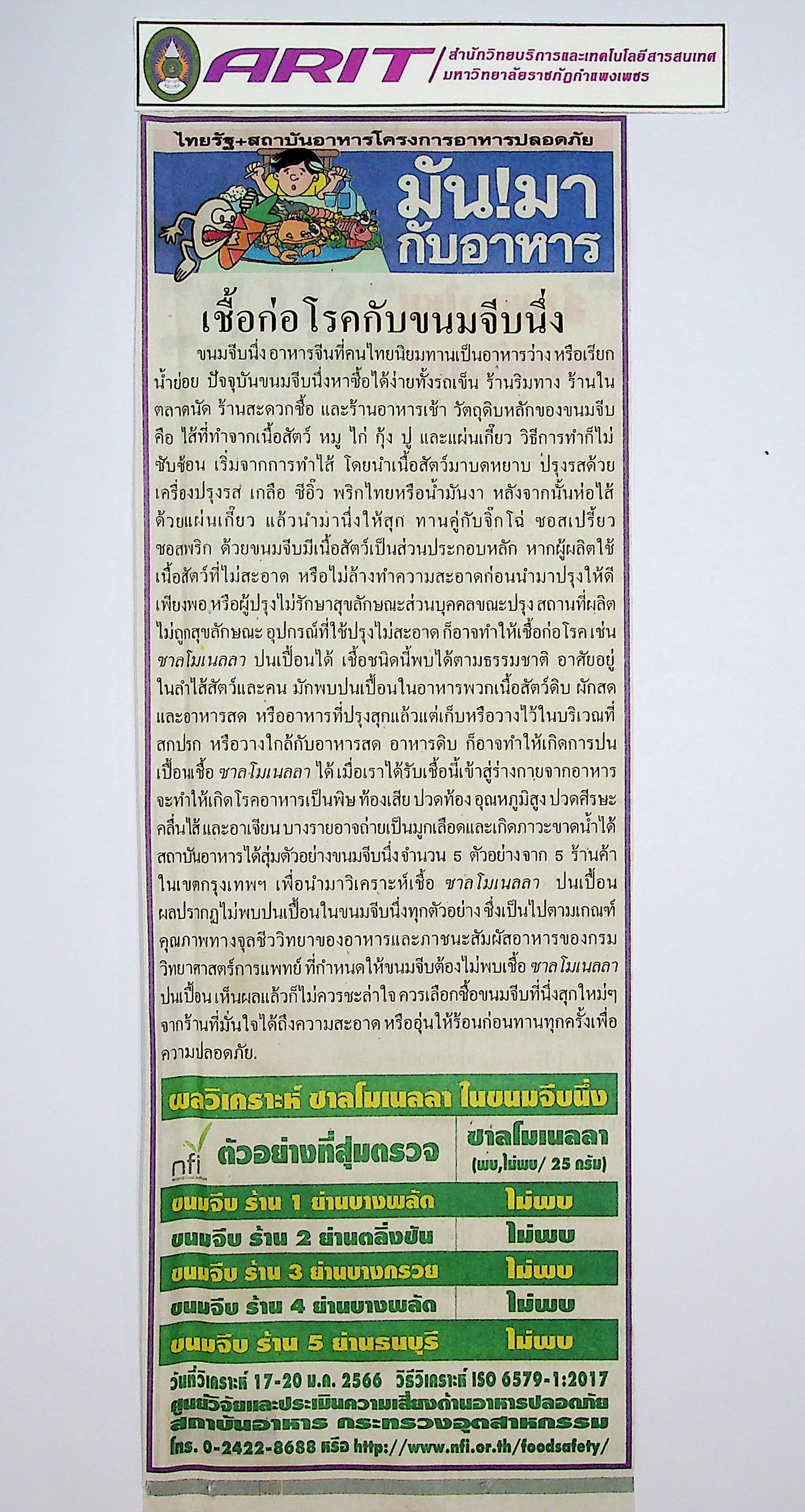 | หัวข้อข่าว | เชื้อก่อโรคกับขนมจีบนึ่ง | ผู้จัดทำ | น.ส.มาลี ประสงค์ดี |