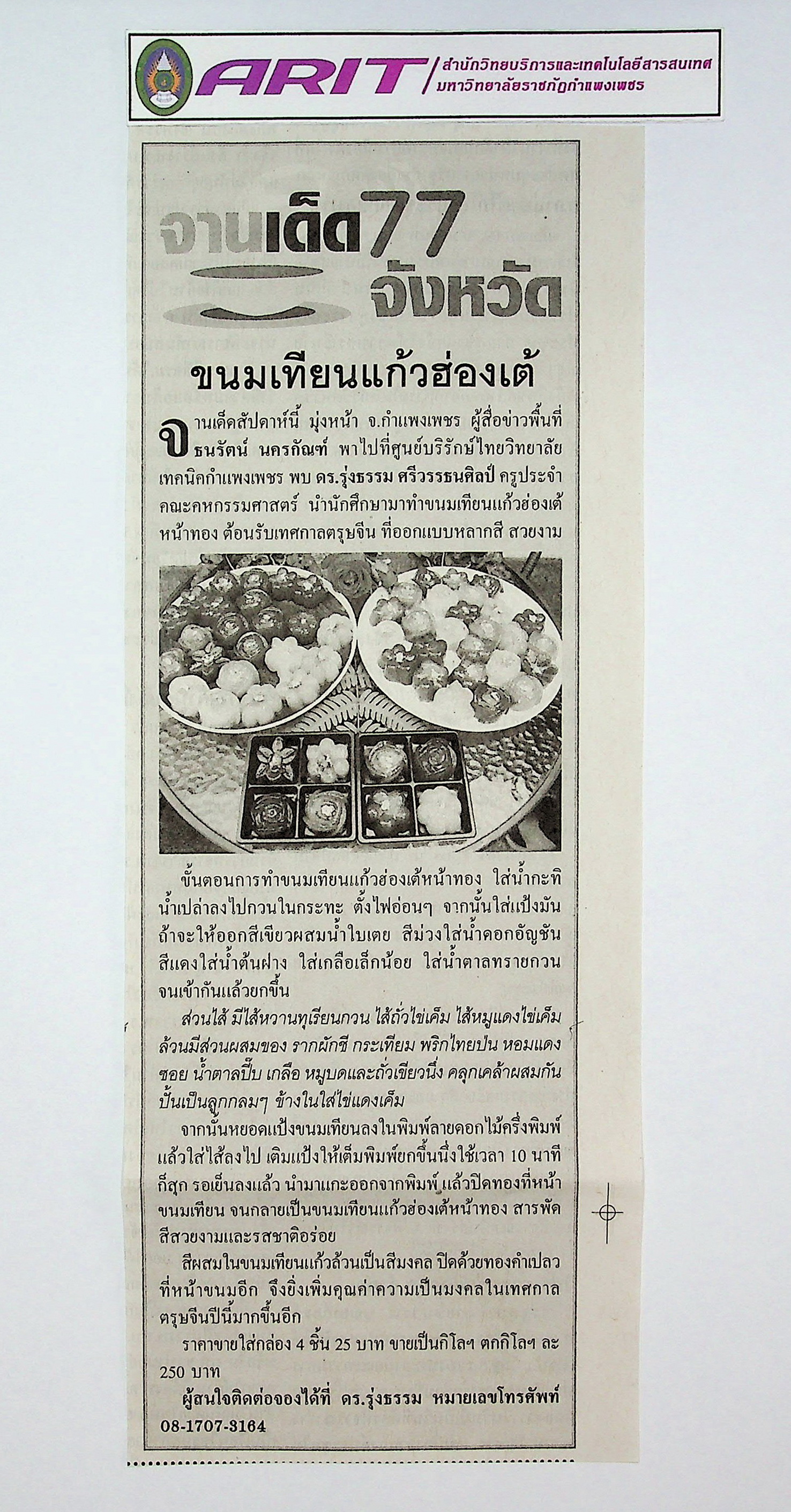 | หัวข้อข่าว | ขนมเทียนแก้วฮ่องเต้ | ผู้จัดทำ | น.ส.มาลี ประสงค์ดี |