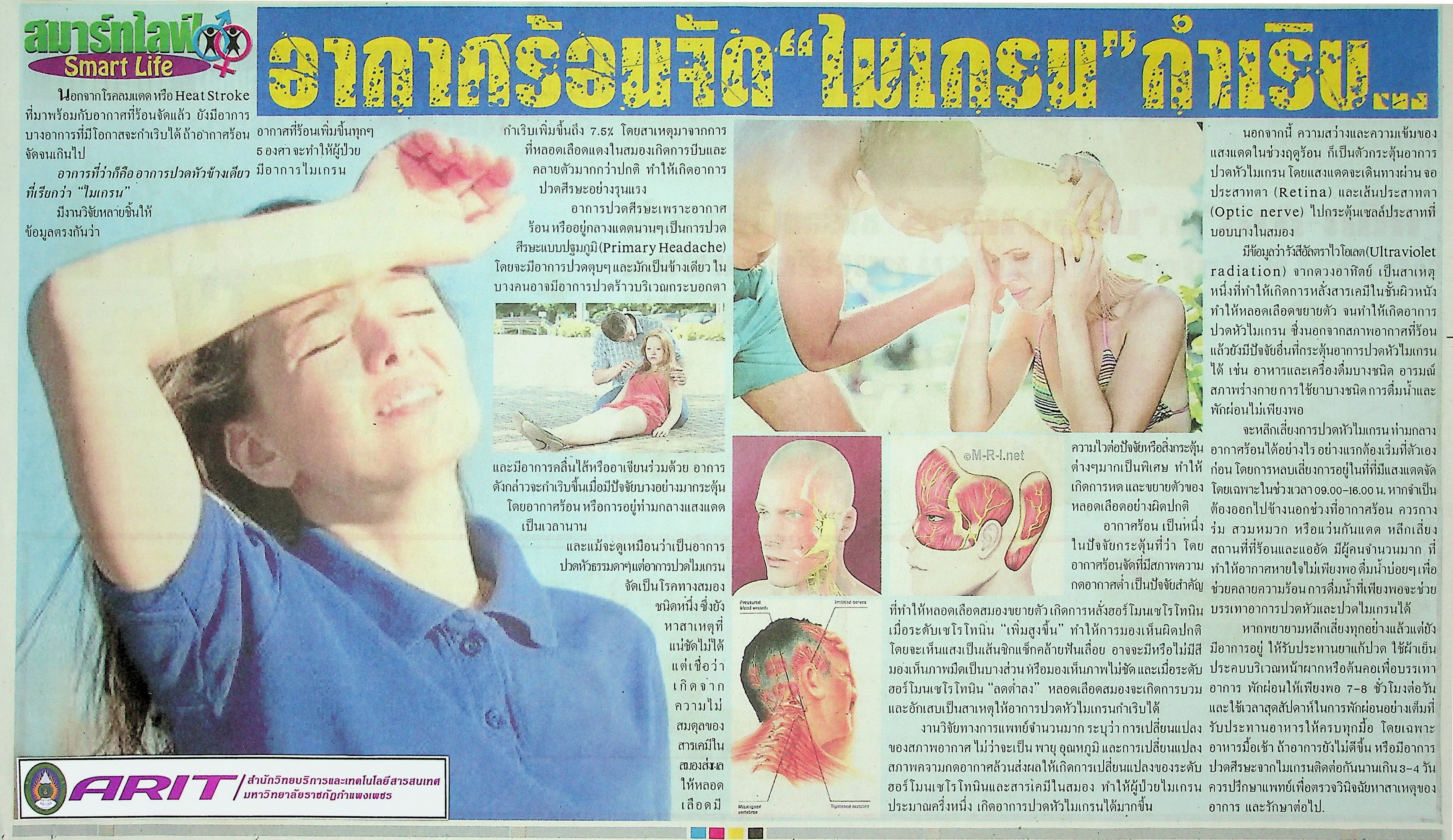 | หัวข้อข่าว | อากาศร้อนจัด "ไมเกรน" กำเริบ | ผู้จัดทำ | น.ส.มาลี ประสงค์ดี |