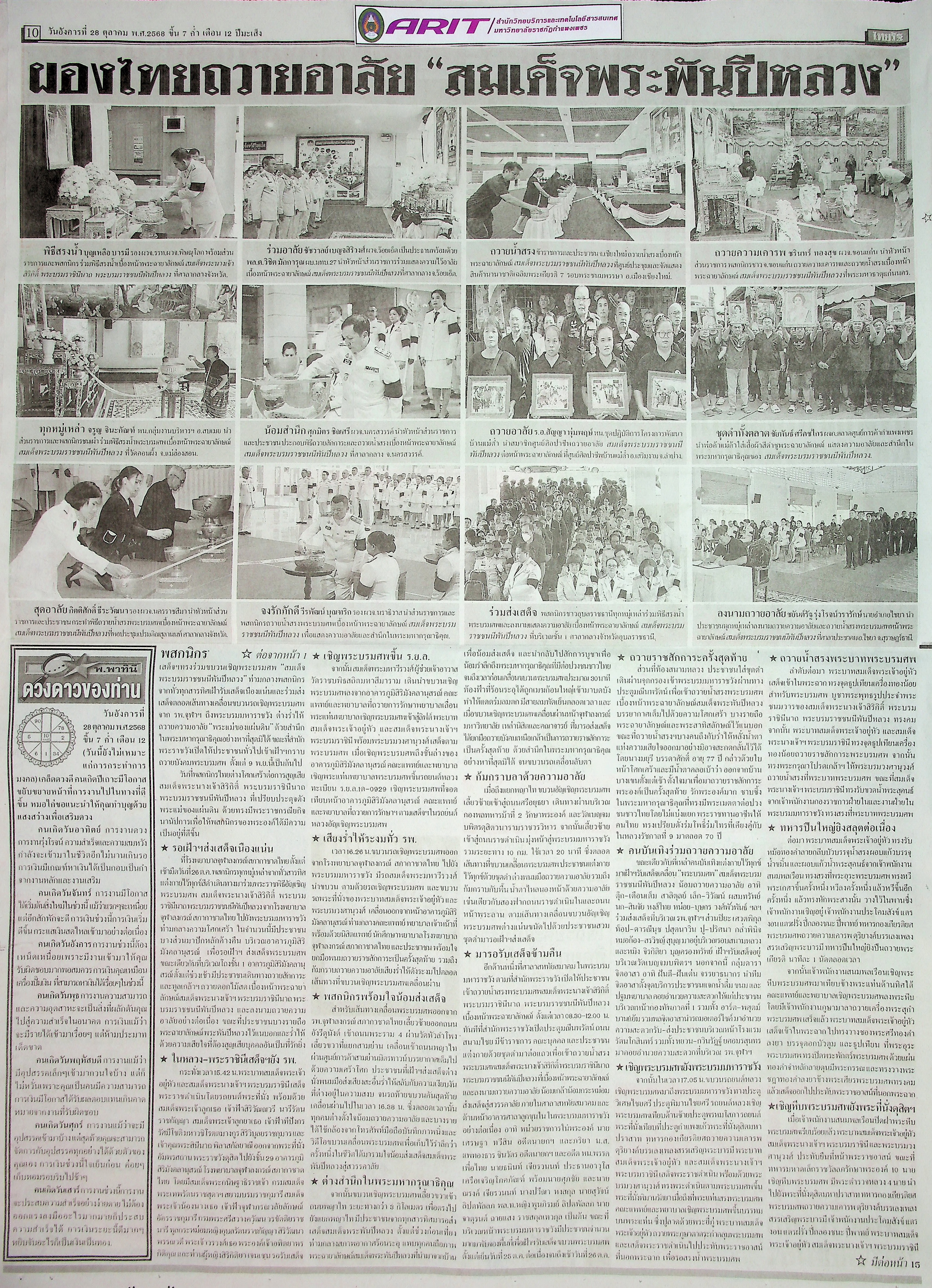 | ชื่อหนังสือพิมพ์ | ไทยรัฐ | หน้า | 1,10,15,16 |