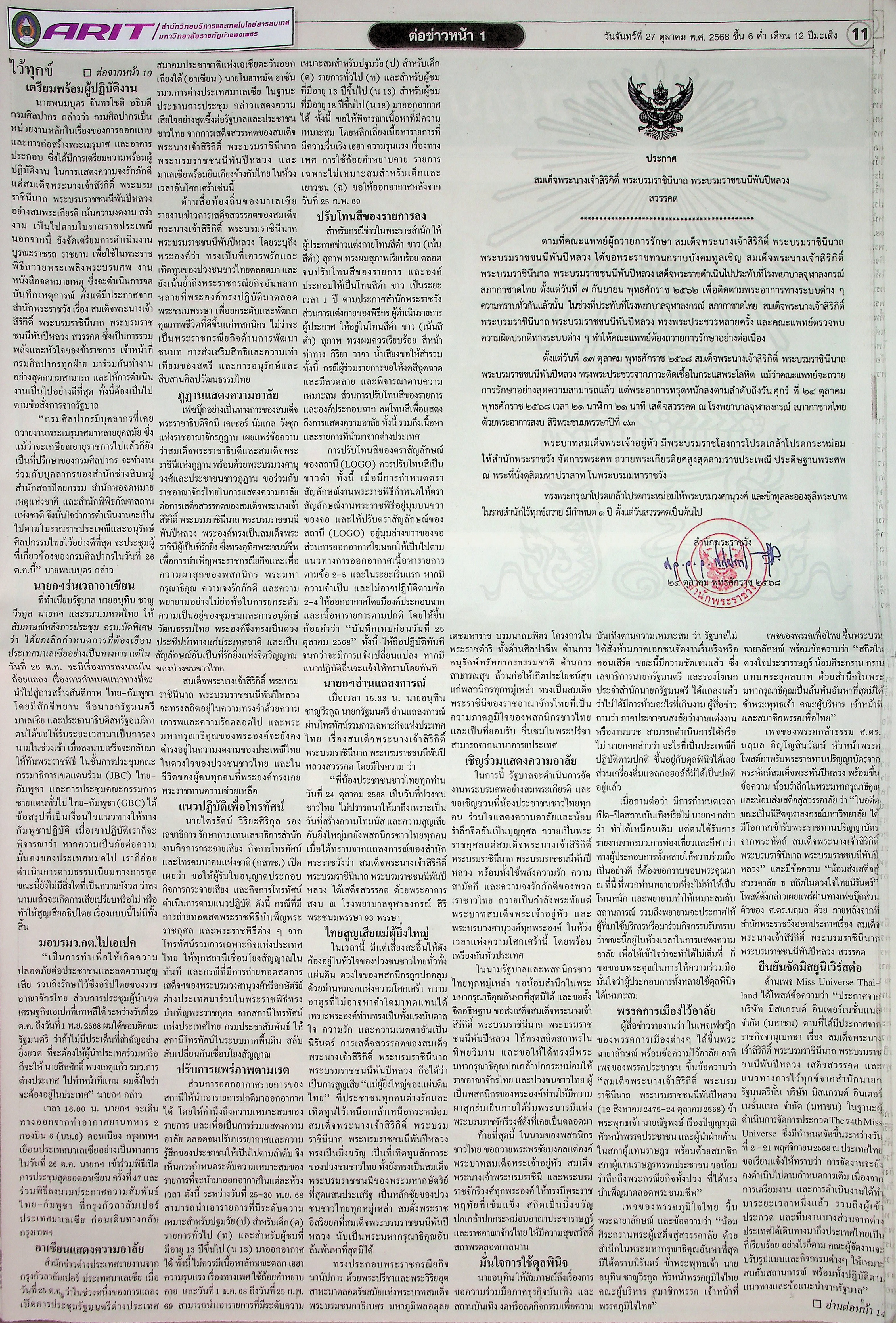 | เลขทะเบียน | 680075 | วันที่ | 27 ตุลาคม 2568 |