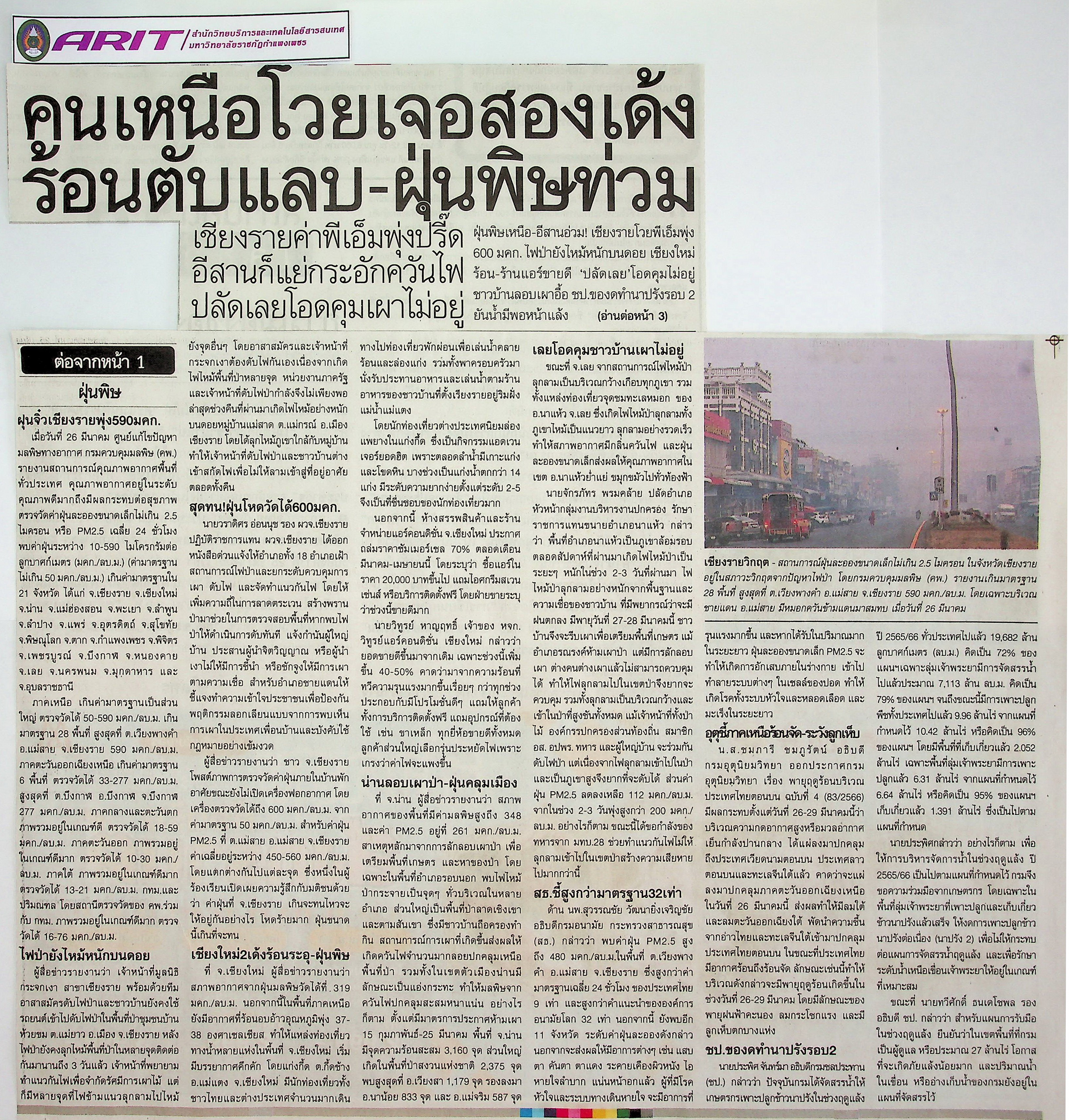 | หัวข้อข่าว | คนเหนือโวยเจอสองเด้ง ร้อนตับแลบ-ฝุ่นพิษท่วม | ผู้จัดทำ | น.ส.มาลี ประสงค์ดี |