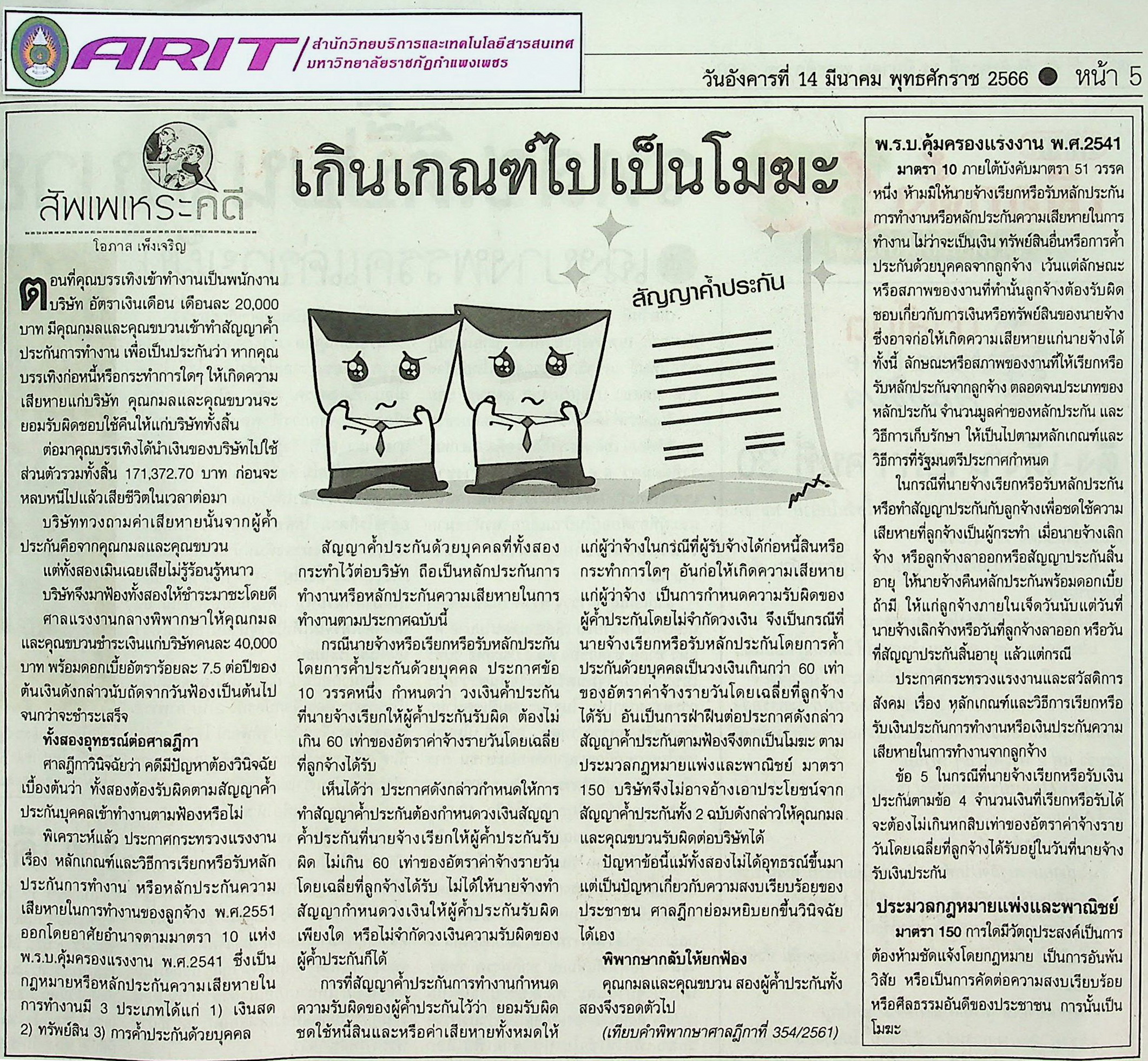 | หัวข้อข่าว | เกินเกณฑ์ไปเป็นโมฆะ | ผู้จัดทำ | น.ส.มาลี ประสงค์ดี |