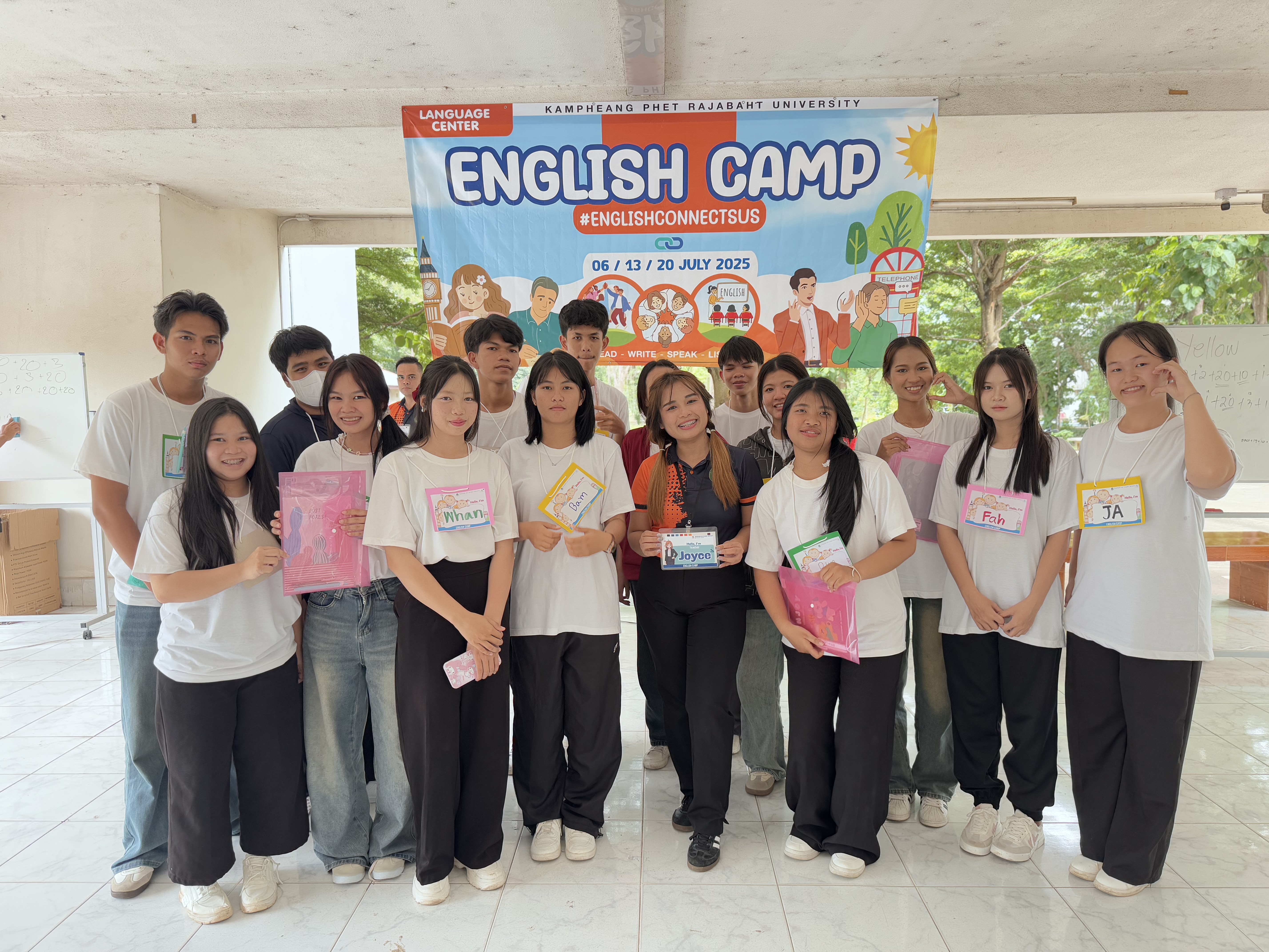 English Camp นักศึกษาได้ร่วมสนุกกับกิจกรรมหลากหลาย ทั้งเกมภาษาอังกฤษ กิจกรรมกลุ่ม และการสื่อสาร ซึ่งช่วยเสริมสร้างทักษะภาษาอังกฤษผ่านการเรียนรู้แบบสนุกสนานและลงมือทำจริง