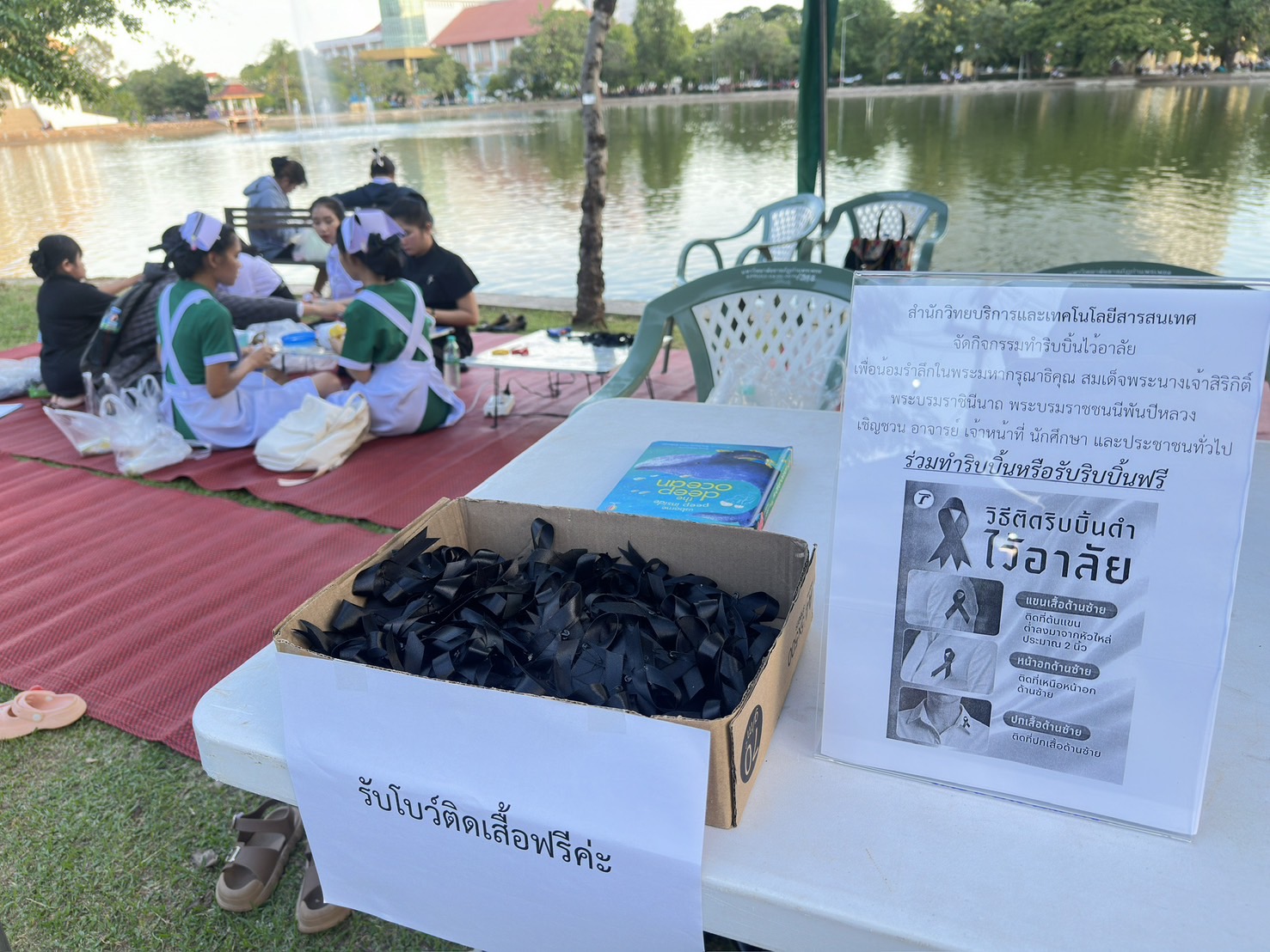 วันที่ 29 ตุลาคม 2568 บุคลากรสำนักวิทยบริการและเทคโนโลยีสารสนเทศ จัดซุ้มกิจกรรมประดิษฐ์ DIY ตุ๊กตาการบูร และกิจกรรมทำริบบิ้นไว้อาลัย เพื่อน้อมรำลึกในพระมหากรุณาธิคุณ สมเด็จพระนางเจ้าสิริกิติ์พระบรมราชินีนาถ พระบรมราชชนนีพันปีหลวง งานตลาดสีเขียว ถนนคนเดิน KPRU Green Ping ครั้งที่ 4 ณ มหาวิทยาลัยราชภัฏกำแพงเพชร