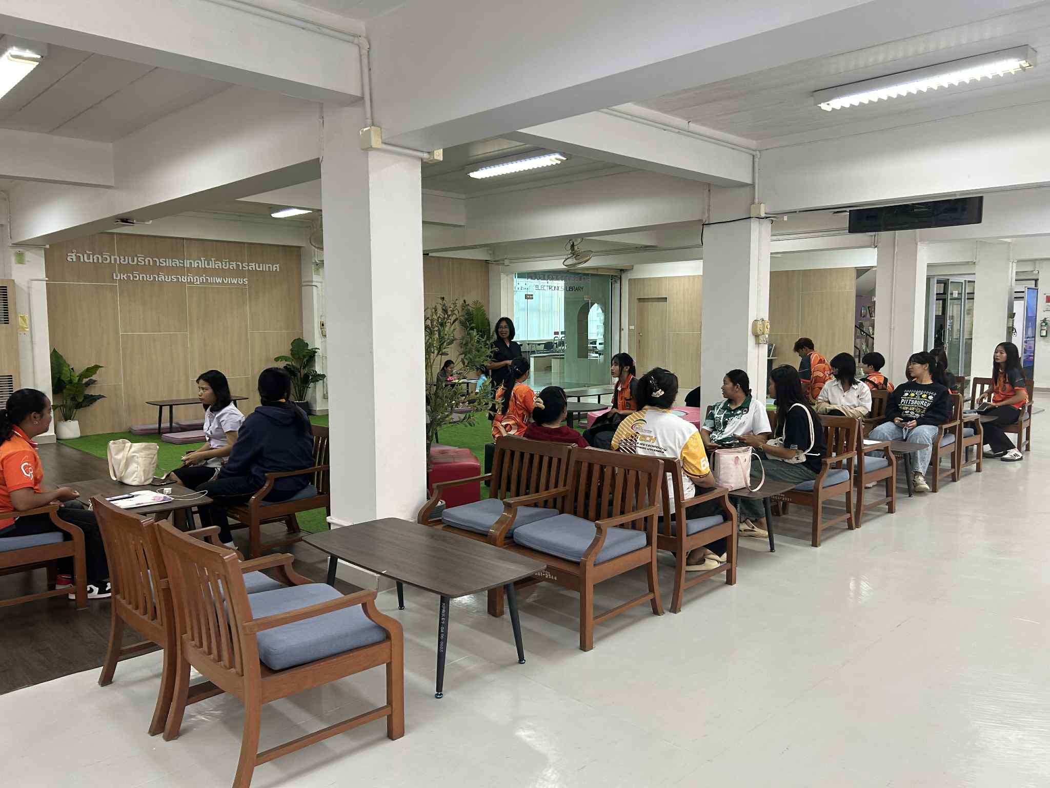 วันที่ 12 พฤศจิกายน 2568 เวลา 09.00-10.00 น. บุคลากรสำนักวิทยบริการและเทคโนโลยีสารสนเทศ ต้อนรับนักศึกษาชั้นปีที่ 1 หมู่เรียน 6813202 สาขาวิชาเคมี และ หมู่เรียน 6813205 สาขาวิชานวัตกรรมและธุรกิจการอาหาร เยี่ยมชมพื้นที่ให้บริการต่างๆ ของสำนักวิทยบริการฯ แนะนำขั้นตอนและบริการสืบค้นสารสนเทศ บริการฐานข้อมูล บริการอินเทอร์เน็ต บริการถ่ายเอกสาร บริการห้องศึกษาค้นคว้าเฉพาะกลุ่ม การให้บริการของศูนย์ภาษา การให้บริการของศูนย์คอมพิวเตอร์ บริการอื่นๆ เพื่อให้นักศึกษาได้รู้ และใช้ประโยชน์ขณะศึกษาในมหาวิทยาลัยราชภัฏกำแพงเพชร โดยรายละเอียดมีดังนี้