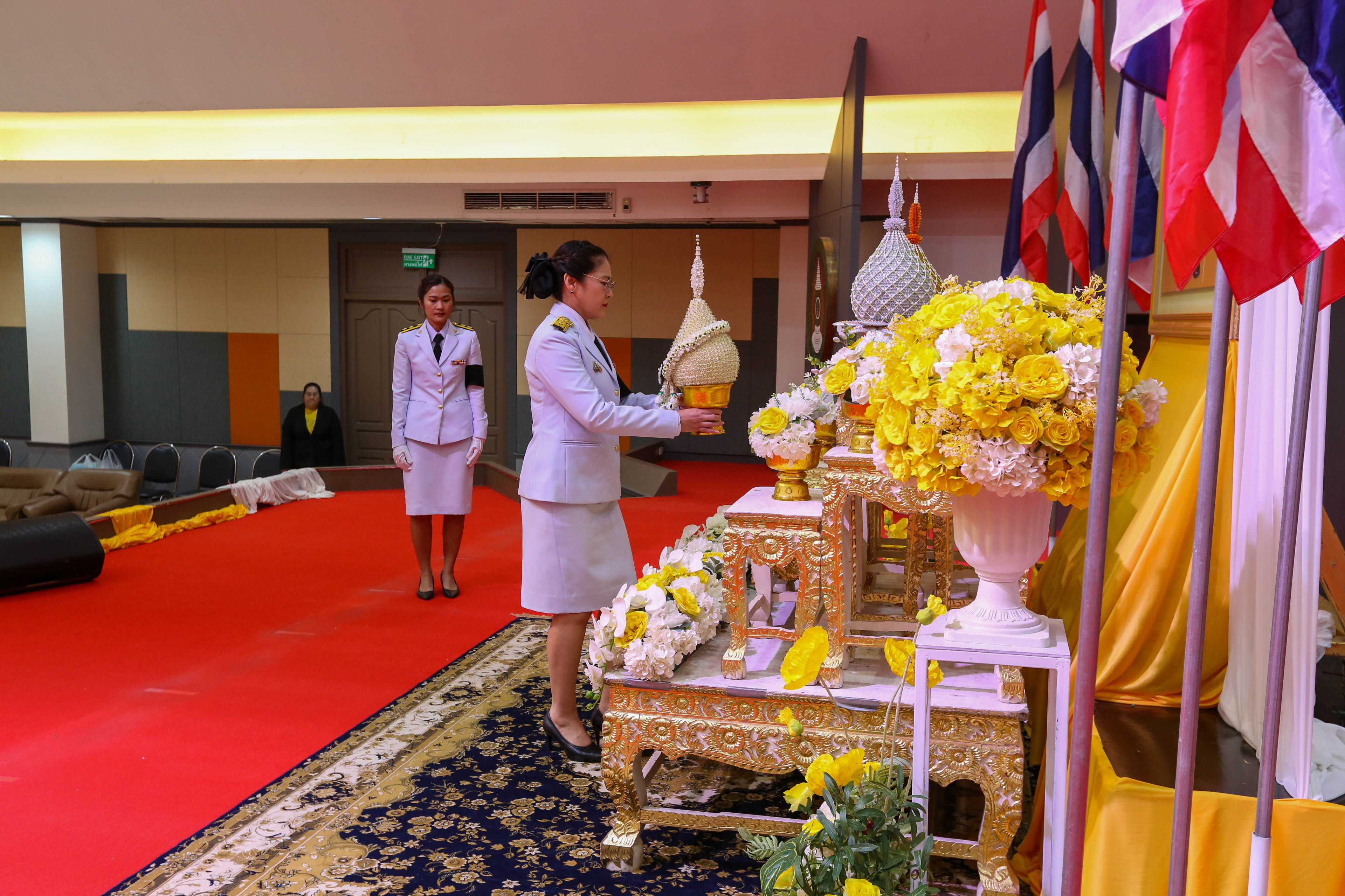 1) พิธีวางพุ่มพุ่มดอกไม้ถวายราชสักการะ