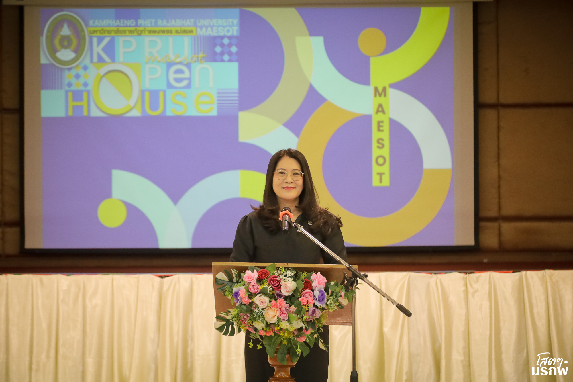 โดย ผู้ช่วยศาสตราจารย์ ดร.ปรียานุช พรหมภาสิต อธิการบดี เป็นประธานในพิธีเปิดโครงการ และ ผู้ช่วยศาสตราจารย์ ดร.อดิเรก ฟั่นเขียว รองผู้อำนวยการฝ่ายวิชาการ วางแผนและวิจัย มหาวิทยาลัยราชภัฏกำแพงเพชร แม่สอด กล่าวรายงานว่า การจัดโครงการ ซึ่งมีวัตถุประสงค์เพื่อเปิดโอกาสให้นักเรียน นักศึกษา ครู และบุคลากรทางการศึกษา ได้รับรู้ข้อมูลเกี่ยวกับมหาวิทยาลัยและหลักสูตรการเรียนการสอนของมหาวิทยาลัยราชภัฏกำแพงเพชร แม่สอด รวมถึงการส่งเสริมการแลกเปลี่ยนเรียนรู้ทางวิชาการ การพัฒนาทักษะวิชาชีพ และการแสดงศักยภาพของเยาวชน ที่จะนำไปสู่การพัฒนาทรัพยากรมนุษย์ให้มีคุณภาพตามมาตรฐานสากล