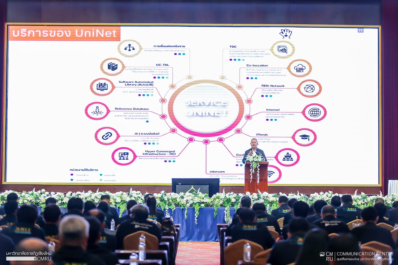 ภายในพิธีเปิดงานได้รับเกียรติจาก ผู้ช่วยศาสตราจารย์เกษรา ปัญญา รองอธิการบดี มหาวิทยาลัยราชภัฏเชียงใหม่ เป็นผู้กล่าวต้อนรับผู้เข้าร่วมงานจากทั่วประเทศ และ ผู้ช่วยศาสตราจารย์ ดร.กัลยา ใจรักษ์ ผู้อำนวยการสำนักดิจิทัลเพื่อการศึกษา มหาวิทยาลัยราชภัฏเชียงใหม่ เป็นผู้กล่าวรายงานวัตถุประสงค์การจัดงาน โดยงานในครั้งนี้ได้รับเกียรติจาก รองศาสตราจารย์ ดร.ประมา ศาสตระรุจิ ผู้อำนวยการสำนักงานบริหารเทคโนโลยีสารสนเทศเพื่อพัฒนาการศึกษา (สบทศ.) หรือ UniNet สังกัดสำนักงานปลัดกระทรวง อว. เป็นประธานในพิธีเปิดอย่างเป็นทางการ พร้อมเป็นวิทยากรบรรยายพิเศษในหัวข้อ "บทบาทของ UniNet ในการยกระดับ Library & Digital Services มหาวิทยาลัยราชภัฏสู่ Digital University" เพื่อร่วมวางแนวทางพัฒนาเทคโนโลยีสารสนเทศของกลุ่มมหาวิทยาลัยราชภัฏให้ก้าวทันต่อความเปลี่ยนแปลงอย่างยั่งยืน สำหรับการสัมมนา ARIT Network ถือเป็นเวทีที่จัดขึ้นต่อเนื่องเป็นปีที่ 13 เพื่อส่งเสริมความร่วมมือระหว่างมหาวิทยาลัยราชภัฏทั่วประเทศ ในการแลกเปลี่ยนความรู้ด้านดิจิทัลและปัญญาประดิษฐ์ (AI) โดยมีเป้าหมายหลักคือ การจัดการองค์ความรู้ให้ทันสมัยและการยกระดับบริการห้องสมุด ตอบโจทย์ทั้งงานบริการวิชาการและงานวิจัย