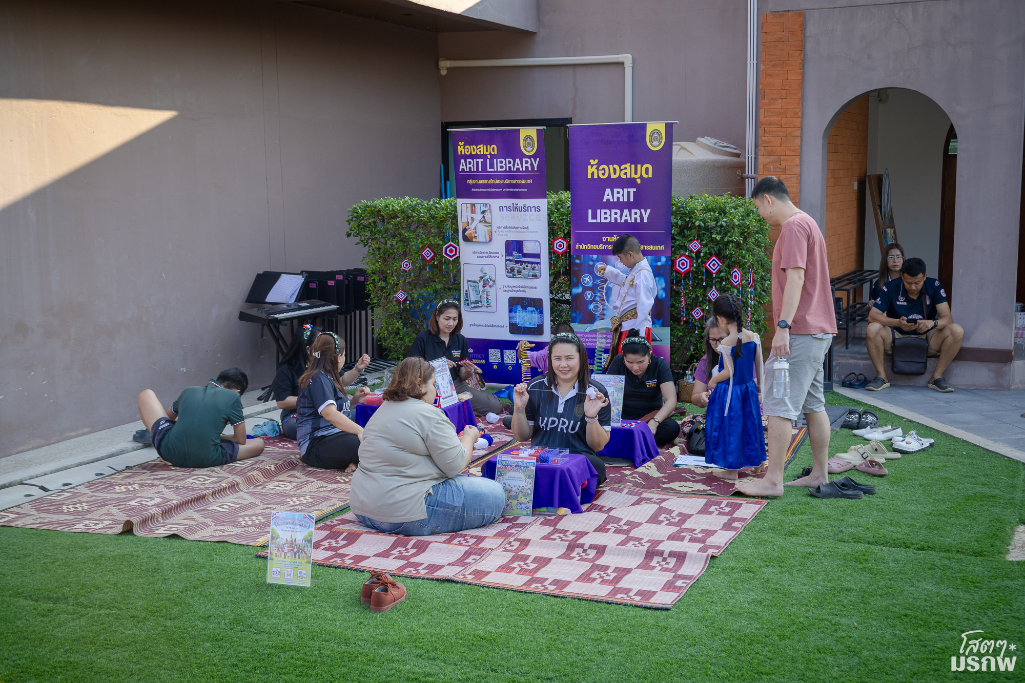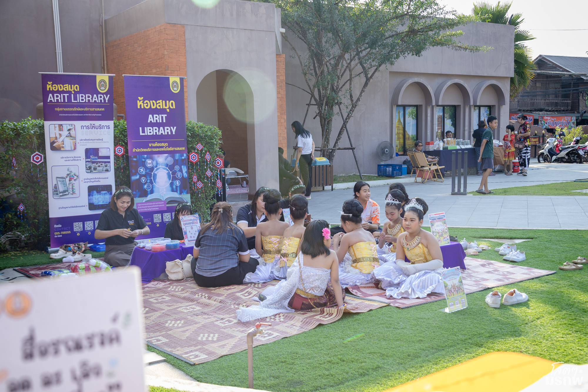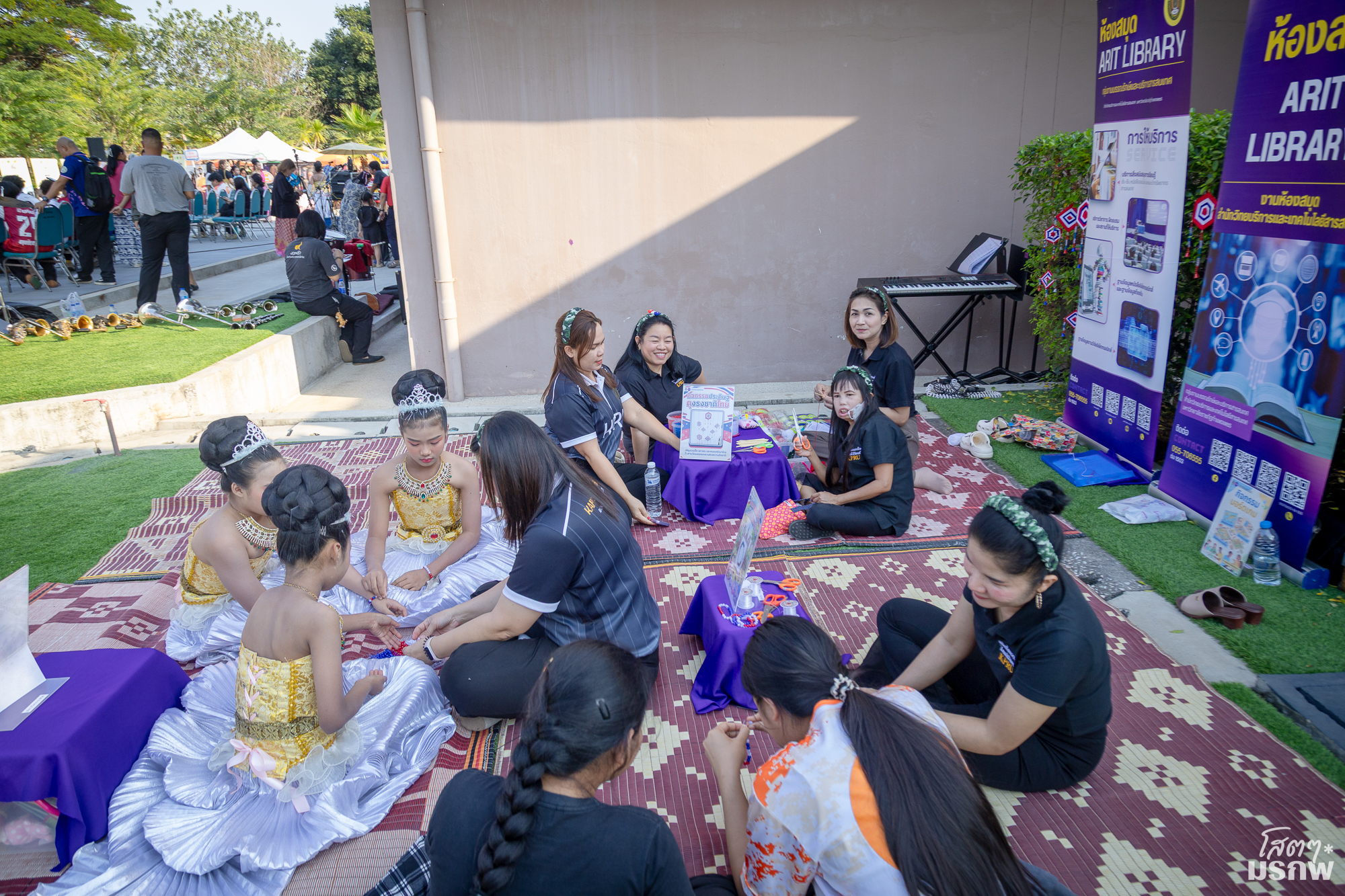 สำนักวิทยบริการฯ จัดกิจกรรมบอร์ดเกม กิจกรรมงานประดิษฐ์ DIY ที่แสดงออกซึ่งความรัก ชาติ ศาสนา พระมหากษัตริย์ และภายในงานมีบูธจำหน่าย ผลิตภัณฑ์ผ้าพิมพ์ลายใบไม้ และกิจกรรมสุดสร้างสรรค์ ทุบใบไม้ลงบนผ้า ฯลฯ